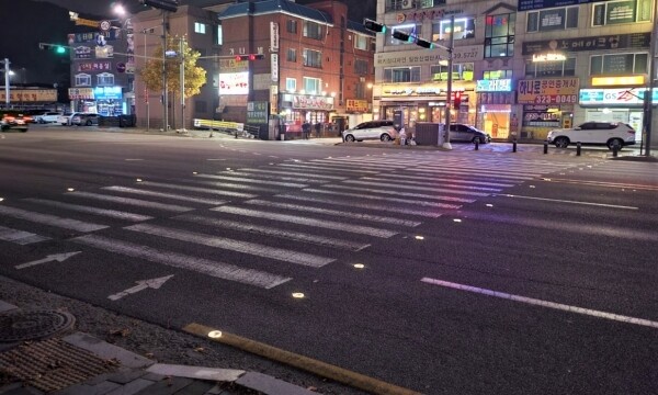 또 교통량이 많은 유림농협삼거리 횡단보도 바닥에 공항 활주로와 같이 LED 조명을 설치해 야간 운전자들이 횡단보도는 물론 보행자를 잘 식별하도록 했다.