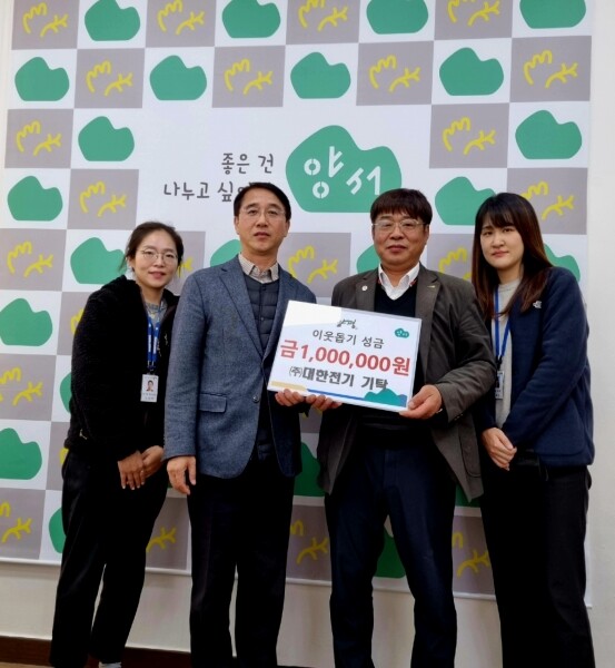 [뉴스서울] ㈜대한전기은 지난 15일 양서면사무소을 방문해 이웃돕기 성금 100만원을 기탁했다.