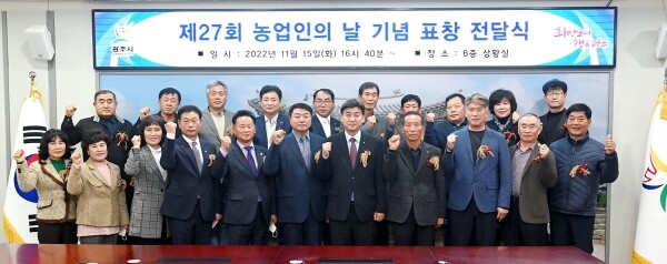 이날 전달식에는 광주시 농업·농촌발전에 이바지한 우수농업인 14명에 대한 시장 표창 및 도지사 표창 시상이 이뤄졌으며 어려운 여건 속에서 농업발전을 위해 수고한 농업인의 노고를 위로하고 격려했다.