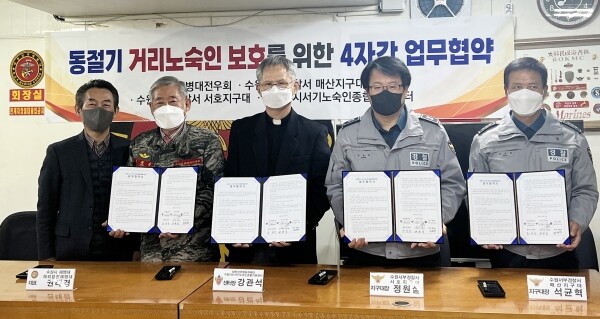 4개 기관·단체는 16일 수원시 해병대 권선 전우회 사무실에서 ‘동절기 노숙인 야간 선도활동 협약’을 체결하고 협력을 약속했다.