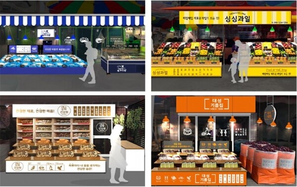 상품 판매대는 물품원산지·가격, 제로페이 가맹점 표시 등 정보제공과 함께 위생관리가 용이한 재질 사용 등 이용고객의 편의를 돕는 디자인이 적용된다.