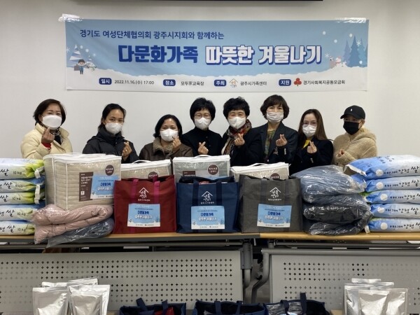 이번 전달식은 여성단체협의회 광주시지회에서 지난 7월에 진행한 ‘사랑의 바자회’ 활동으로 마련된 성금으로 다문화가정을 위한 방한 물품을 지원하고 경기광주경찰서와 광주시 가족센터 운영법인인 한국지역복지봉사회로부터 지원받은 쌀과 삼계탕을 함께 지원했다.