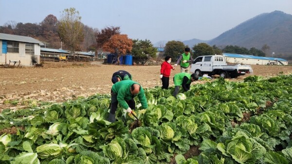 이날 최은옥 통장을 비롯한 중앙동 새마을협의회, 중앙동 행정복지센터 직원들은 이른 아침부터 모여 배추를 직접 수확했다.