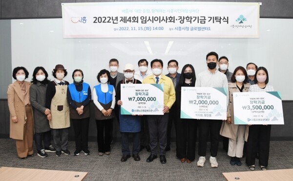 [뉴스서울] 시흥시인재양성재단이 지난 15일 시흥시청 글로벌센터1에서 장학기금 기탁식과 2022년 제4회 임시이사회를 진행했다.