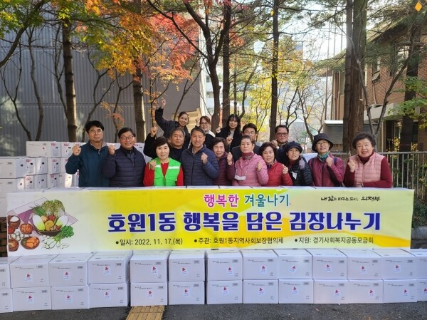 조복현 호원1동장은 “추운 날씨에 김장김치를 전달해준 이정열 지역사회보장협의체 위원장님을 비롯한 자생단체 회원님들께 감사드린다”며 “물가상승으로 김장김치를 걱정했을 취약계층 분들에게 조금이나마 도움이 되길 바라며 올겨울을 여느 해보다 행복하게 보냈으면 좋겠다”고 밝혔다.