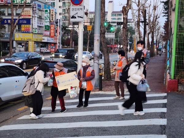 이날 대화노인복지관 선배시민대학 참여자 11명은 수험장을 방문해 수험생에게 핫팩과 간식꾸러미 100여 개를 전달했다.