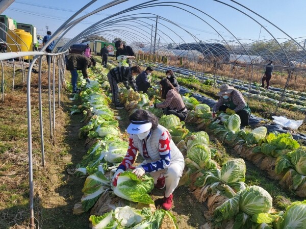장항1동 주민자치회 ‘자연아놀자’ 분과에서는 2022년 사업으로 주민자치 한마음농장을 운영해 올 봄부터 주민자치회에서 직접 재배한 배추를 주민자치회 위원들과 함께 수확했고 배추 400여 포기를 흰돌종합사회복지관과 문촌9종합사회복지관에 전달하는 행사를 진행했다.