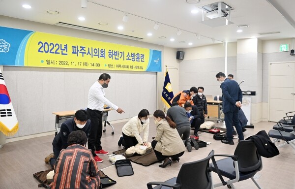 실제 파주시의회에서는 지난 9월 파주시의회 이주현 사무국장과 직원들이 심정지 된 직원에게 심폐소생술을 실시해 신속한 조치로 의식을 찾은 사례가 있어, 당시 사례분석을 비롯한 상황 설정 등 정확한 심폐소생술 방법 및 자동심장충격기 사용법에 대해 체계적인 교육을 실시했다.