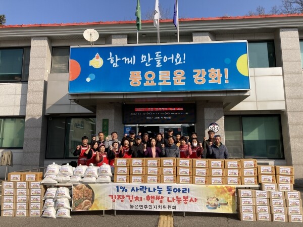 주민자치위원회 위원 20여명이 참여해 직접 재배한 배추로 담근 김장김치 200포기와 햅쌀 총 300kg을 홀로 사는 어르신 등 어려운 이웃 120세대에 전달했다.
