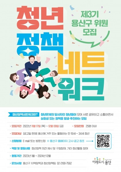 한편 구는 2019년 ‘용산구 청년 기본조례’를 제정, 전국 최대 규모로 청년정책자문단을 구성·운영해 왔다.