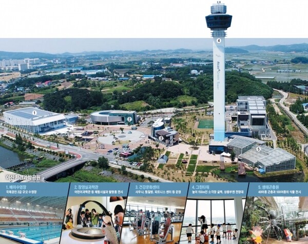 아산시 환경과학공원은 장영실과학관, 아산생태곤충원, 생활자원처리장, 전망대까지 갖춘 친환경생태공원이다.