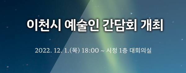 [뉴스서울]이천시는 12월 1일 오후 6시, 시청 1층 대회의실에서 관내 예술인 대상 간담회를 개최하기로 하고 모집을 진행 중이다.