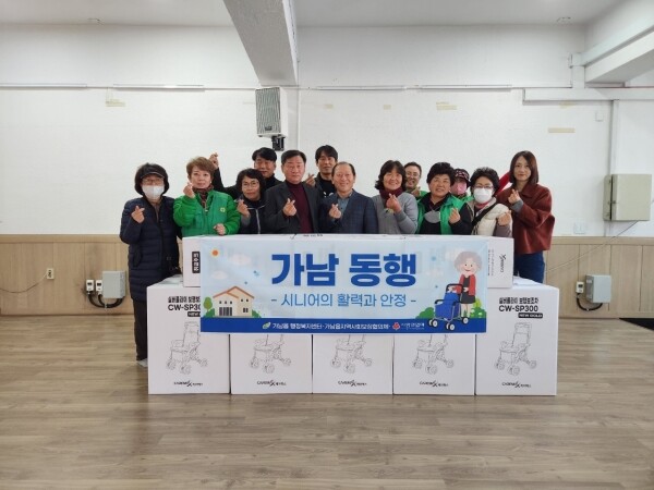이복환 가남읍장은 “보행에 어려움을 겪는 어르신들도 실버카를 이용해 마음 놓고 외출과 장보기를 할 수 있게 될 것”이라며 “지역 내 거동불편 어르신들의 사회활동 참여에 기여할 것으로 기대하며 앞으로도 복지사각지대 위기가정 주민의 발굴 및 지원을 강화하겠다”고 전했다.