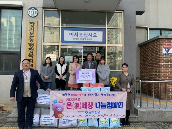 이에 박경애 장기본동장은 “어려운 이웃을 위해 꾸준한 나눔을 실천해주신 김포신협본점에 감사드린다”며 “추워지는 날씨에 따뜻한 온기가 잘 전달될 수 있도록 하겠다”고 밝혔다.