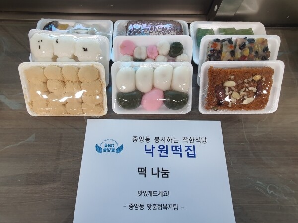 이날도 낙원떡집 임형두 대표가 중앙동 행정복지센터에 기탁한 떡을 맞춤형복지팀 사례관리 담당 공무원들이 다양한 어려움을 겪고 있는 복지 위기가구에 방문해 전달했다.