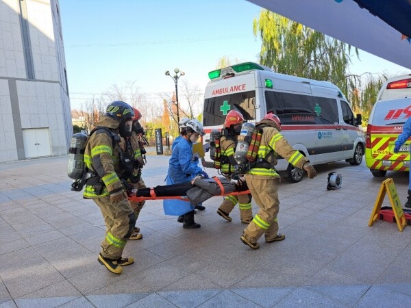 특히 다중이용시설 화재에서 취약점으로 지적되고 있는 신속한 상황전파와 응급구조 등 현장 대응에 중점을 두고 화재 상황 전파 및 초기 대응, 통합지원본부 가동, 화재진압 훈련, 현장지휘소 및 응급의료소 운영, 통합지원본부의 재난현장 수습 등 5단계로 진행됐다.