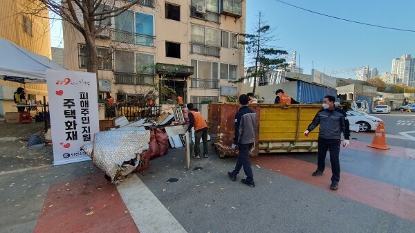 복구에는 부평구 자원순환과와 부개2동 행정복지센터, 인천소방본부, 의용소방대, 인하대학교 봉사동아리 등 35명이 참여해 불에 탄 가전제품, 가구, 집기류를 폐기하고 집 안을 청소하는 등 피해복구를 위해 구슬땀을 흘렸다.