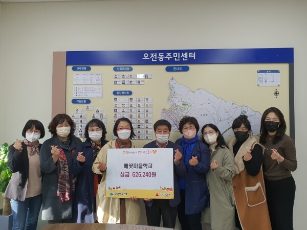 재능기부로 만들어진 고추장과 미니 손가방을 제9회 의왕시 평생학습축제와 마을 성과공유회를 통해 판매해 수익금을 지역사회에 환원하기 위해 기부금을 전달했다.