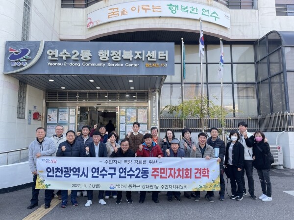 성남시 상대원1동 주민자치위원는 이날 지난 해 전국 주민자치박람회 우수사례로 선정된 연수2동 주민자치회의 자치활동 우수사례를 공유하기 위해 25명으로 방문단을 꾸려 연수2동을 방문했다.