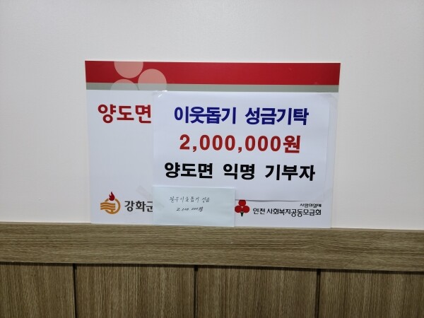 조순이 면장은 “어려운 시기에도 뜻깊은 기부를 해주신 익명의 기부자에게 감사드리며 성금은 관내 저소득층을 위한 사업에 소중히 사용하겠다”고 말했다.