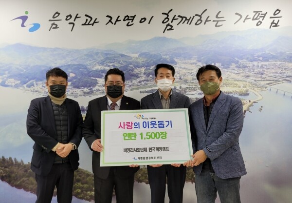 이에 임상호 가평읍장은 “추운 겨울을 따뜻하게 이겨낼 수 있도록 관심을 보내주셔서 감사의 말씀을 드린다 온정의 손길이 필요한 이웃을 위해 사용할 수 있도록 하겠다”고 말했다.