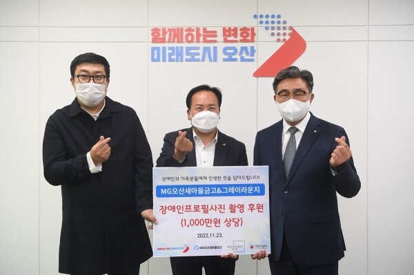 이번 후원은 MG오산새마을금고가 1000만원을 기탁해 사진촬영 비용을 부분 지원하고 최혁수 그레이라운지 대표는 사진촬영 재능기부를 담당하게 된다.