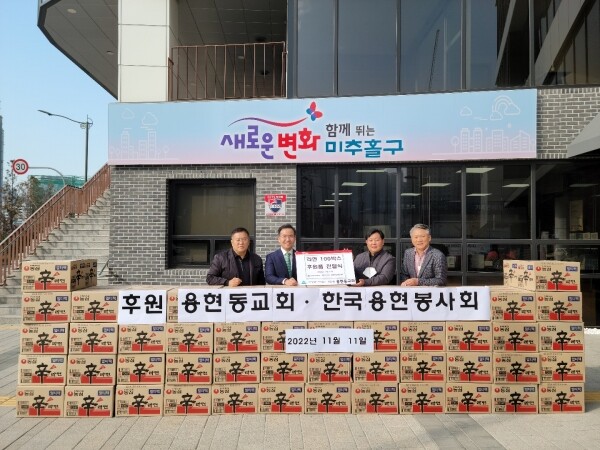 용현동 교회는 주변에 소외된 어려운 이웃에게 보내는 작은 정성이라며 라면 100박스를 전달했으며 미추홀 새마을금고에서는 동절기 어려움을 겪는 취약계층에 따뜻한 온정을 나누고자 김장김치 450kg을 전달했다.