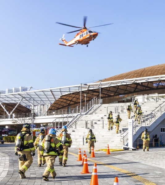 이날 훈련은 계양경기장에서 대형화재가 발생한 상황을 가상해 실시했으며 계양구청, 계양소방서 계양경찰서 군부대 등 14개 기관 소속 300여명과 소방헬기, 굴절차, 응급차, 복구차 등 43대의 장비가 동원돼 복합재난 발생 시, 긴급구조 유관기관 간 협업을 통해 초기대응, 비상 대응, 수습 복구 등 통합적 재난대응체계 점검에 중점을 둔 종합훈련으로 진행됐다.