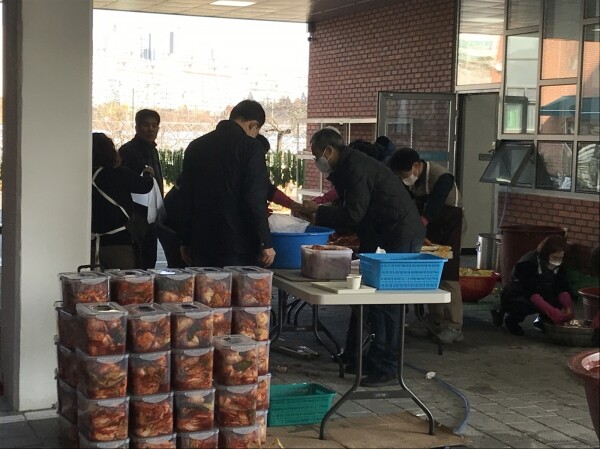 주민자치회 위원들과 통장협의회 및 풍산동 행정복지센터 직능단체 회원들의 자발적 참여로 진행된 이번 행사는 직접 절이고 담근 김장 김치를 풍산동 내 취약계층과 경로당 등 50가구에 전달했다.