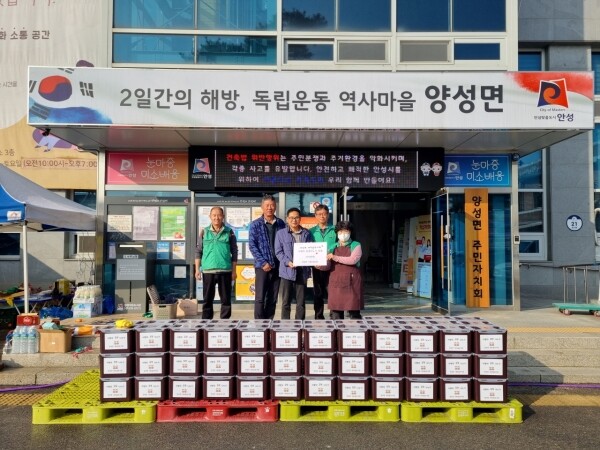 양성면 기업인협의회 윤상균 회장은 김장나누기 행사가 진행 중인 양성면사무소를 찾아 이웃 사랑을 위해 노력하고 있는 부녀회 회원 한 명 한 명을 격려하며 후원금을 전달했다.