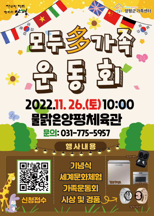 박우영 양평군가족센터장은 “코로나 감염과 여러 사회적 재난으로 정서적 어려움을 겪으며 살아가는 모든 가족들이 이번 행사를 통해 사회적 고립감을 해소하고 일상으로 회복할 수 있기를 바란다”며 특히 “다수의 인원이 참여하는 대형 행사이니만큼 각별히 안전에 주의하고 만일의 사태에 대비한 재난대응책을 수립해 안전에 만전을 기하겠다”고 전했다.