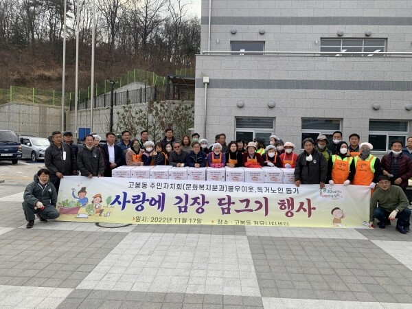 2022년 고봉동 주민자치회 자치사업 사랑의 농사체험 일환으로 진행 된 이번 김장 나눔 행사는 김장에 쓰일 배추와 무를 직접 심고 수확해 고봉동 주민자치회 및 직능단체 50여명이 참여해, 700포기의 김치를 담가 관내 취약계층 200여 가구에 전달했다.