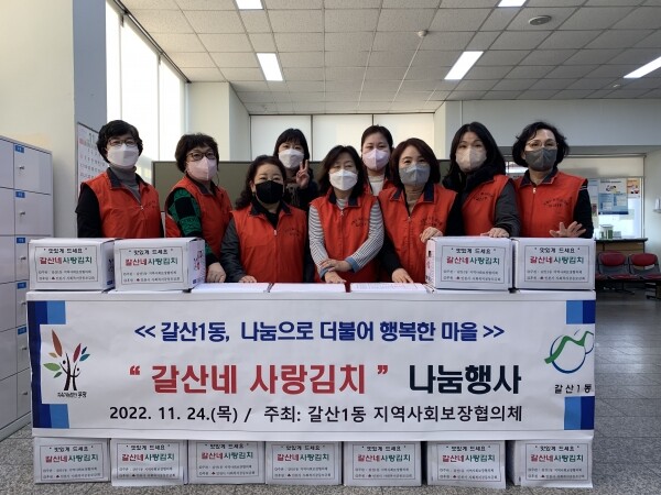 정문숙 갈산1동 지역사회보장협의체 위원장은 “어르신들이 혼자 김치를 담그는 일이 수월하지 않기에 지역사회의 도움이 필요할 것”이라며 “앞으로도 복지사각지대에 있는 이웃들의 발굴과 지원에 최선을 다하겠다”고 말했다.