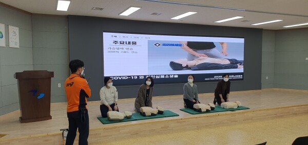 특히 이날 교육은 가평군청 직원들이 응급상황 발생 시 적극적으로 대응할 수 있도록 하기 위해 마련했으며 소화기, 소화전 사용법, 심폐소생술 방법, 자동심장충격기 관리법과 사용 방법 등 이론교육과 CPR 모형을 활용한 실습 위주로 진행됐다.