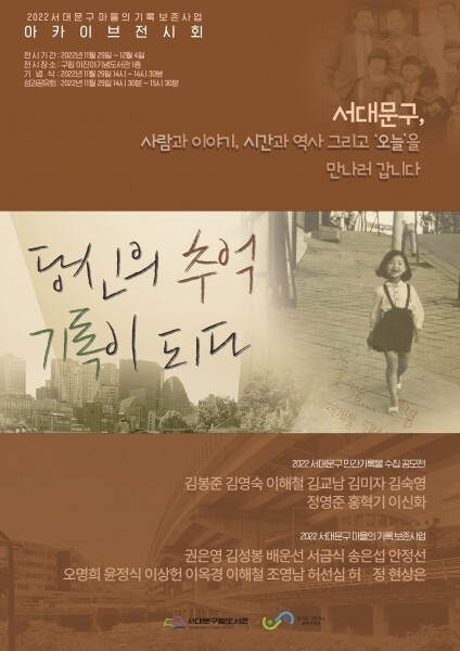 앞서 구는 올해 5∼7월 ‘서대문구 민간 기록물 수집 공모’를 진행했으며 7∼9월에는 소정의 교육 과정을 통해 마을기록가 15명을 양성했다.