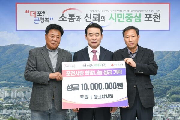 백영현 포천시장은 “지역사회의 어려운 이웃에 대한 관심과 지원에 감사드린다 기탁해 주신 성금은 필요한 곳에 잘 쓰도록 하겠다”고 전했다.
