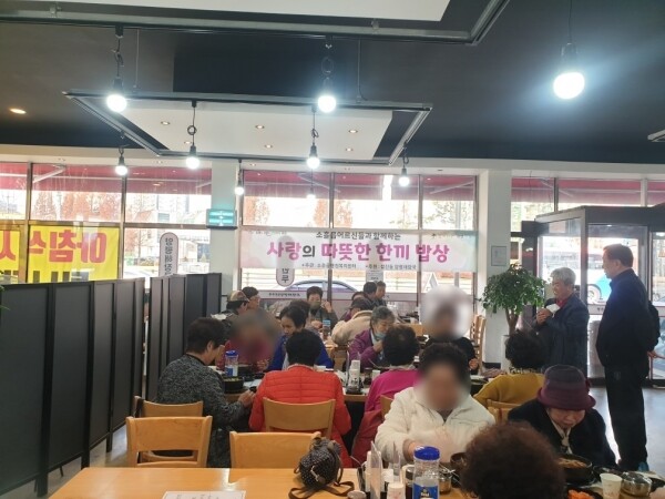 강효진 소흘읍장은 “바쁜 영업시간을 쪼개 기꺼이 어르신들을 위한 따뜻한 식사를 제공해 주셔서 감사드린다”며 “이웃을 돌보는 나눔 활동이 우리 지역 곳곳에 퍼져 더 살기 좋은 소흘읍이 되도록 노력하겠다”고 말했다.