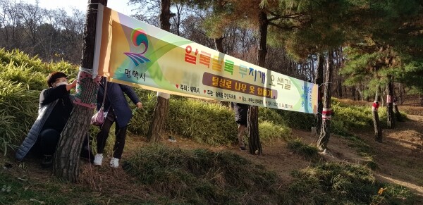 이날 행사에는 주민자치회 위원과 미리 모집한 서포터즈 등 40여명이 함께했으며 공원 내 수목 80여 그루에 뜨개실로 직접 만든 털옷을 입혀 겨울철 추위로부터 수목을 보호하는 효과와 함께 자연과 어우러진 ‘그래피티 니팅’ 예술활동으로 시민들에게 다양한 볼거리를 제공하는 시간을 가졌다.