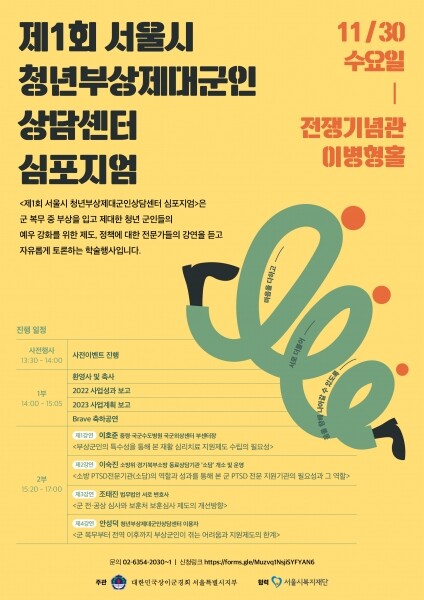 30일 오후 2시부터 5시까지, 전쟁기념관 1층 이병형홀에서 열리는 심포지엄에는 청년부상제대군인과 가족, 청년 보훈에 관심 있는 사람이라면 누구나 참여 가능하다.