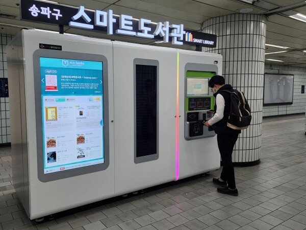 ‘송파 스마트도서관’ 4, 5호에는 인문, 역사, 소설 등 다양한 분야의 신간 및 베스트셀러 500여 권의 도서가 비치돼있으며 365일 연중무휴로 지하철 운영시간에 도서를 대출 및 반납할 수 있다.