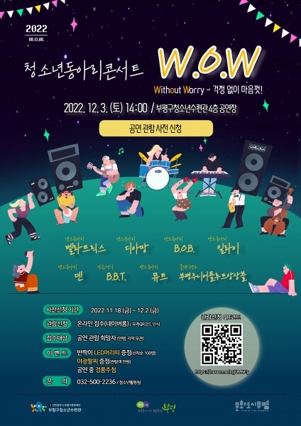 ‘2022 청소년동아리콘서트 W.o.W.-Ⅲ’는 오는 12월 3일 오후 2시부터 부평구 청소년수련관 공연장에서 진행된다.
