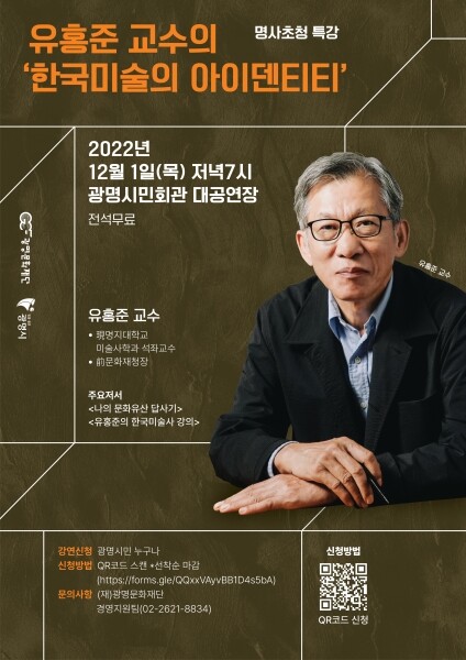 유홍준 교수 초청 특강은 모바일 링크를 통해 참가 신청이 가능하며 광명시민 누구나 무료로 참여할 수 있다.