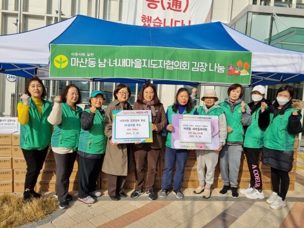 마산동새마을부녀회는 매년 김장김치 나눔 행사 외에도 김과 미역 등의 먹거리 판매를 통한 수익금을 기부 등 마산동의 어려운 이웃을 위해 꾸준하게 봉사활동을 펼치고 있다.