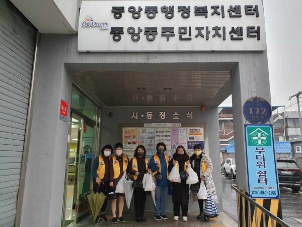 이날도 목련라이온스클럽 회원들은 비가 내리는 궂은 날씨에도 불구하고 중앙동 취약계층 및 복지사각지대 위기가구에 식사를 직접 배달하고 안부를 살피는 등 이웃사랑을 몸소 실천했다.