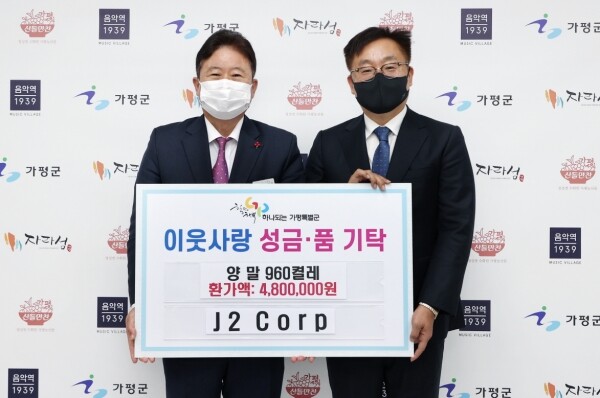 이에 서태원 가평군수는 “추운 겨울에 이웃사랑을 베풀어 온기를 나눠주신 J2 Corp 대표님께 감사드리며 사랑 나눔을 통해 어려운 상황 속에서도 사랑의 온도가 상승하는 계기가 되었으면 한다”고 전했다.
