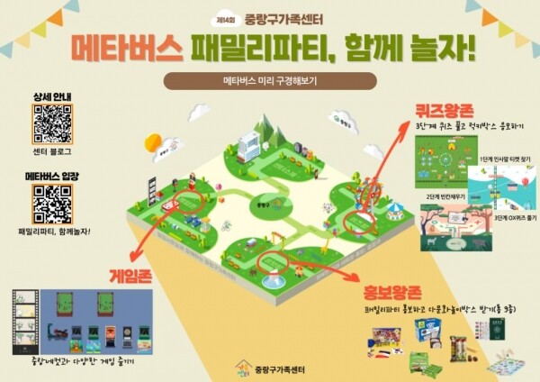 메타버스 가족 축제는 홍보지에 있는 QR코드와 중랑구가족센터 블로그를 통해 접속 가능하다.