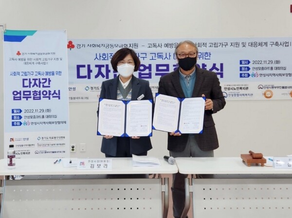 이번 협약은 복지 사각지대에 놓인 안성시 중장년층 사회적 고립 가구를 발굴해 복지자원을 지원 및 연계하고 지역기관과 주민조직 네트워크를 구축해 촘촘한 지역사회 사회안전망을 형성하기 위해 적극 지원 및 상호협력하는 데 목적을 두고 체결됐다.