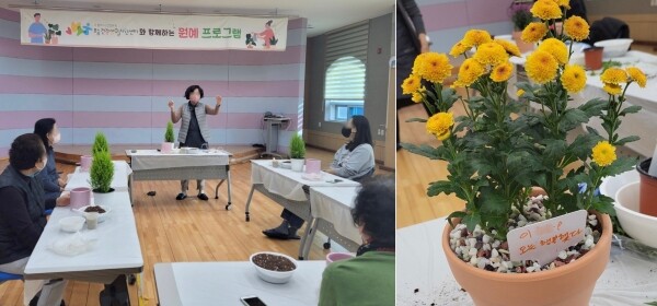 원예교실 ‘행복을 담다’는 다양한 꽃과 식물에 대해 배우며 직접 식물을 가꾸고 지역사회의 이웃을 만나 소통함으로서 주민들의 심리적 스트레스를 해소하기 위한 힐링의 시간을 가질 수 있도록 기획됐다.