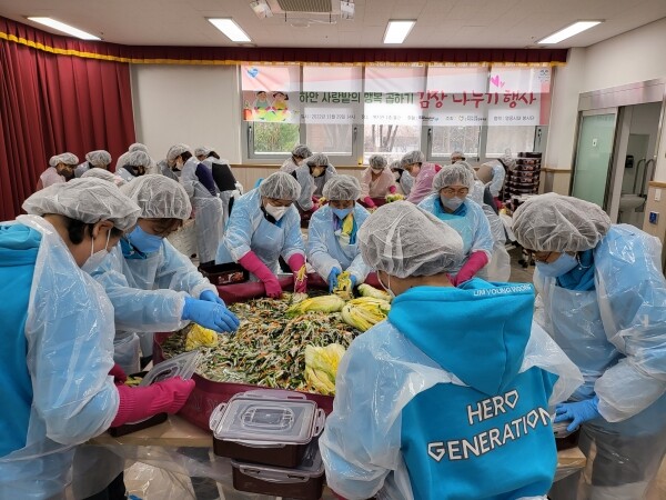 이번 행사에는 함께하는사랑밭이 김장김치 2,000kg을 후원했으며 자원봉사단체 영웅시대 7명과 독거노인 생활지원사 42명이 함께 백김치 1,000kg을 담갔다.