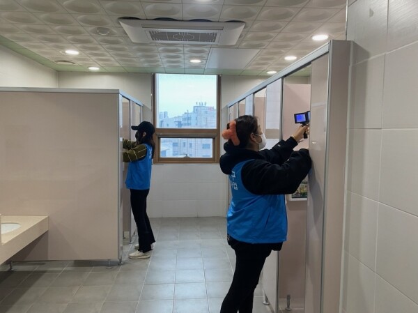 구는 정밀 탐색 후 이상이 없는 경우 ‘안심 화장실’ 스티커를 부착, 공중화장실 이용자의 불안을 해소했다.